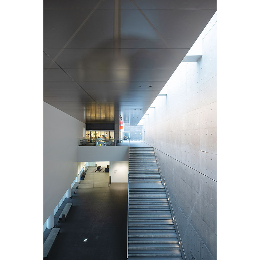 Taniguchi is a world-renowned architect known for designing the expansion of the Museum of Modern Art in New York City. Koichi Nakata, the artistic director and chief curator of MIMOCA, noted that the MI-MOCA building showcases Taniguchi’s commitment to detail. For example, many areas of the museum are paved with large, square stone tiles with vertical and horizontal joints that are all perfectly aligned with no irregularities, appearing as if a grid pattern were drawn three-dimensionally on all surfaces. Highlighting this astonishing precision, Nakata said, “This embodies Taniguchi’s philosophy of eliminating visual noise so viewers can focus solely on artworks.”