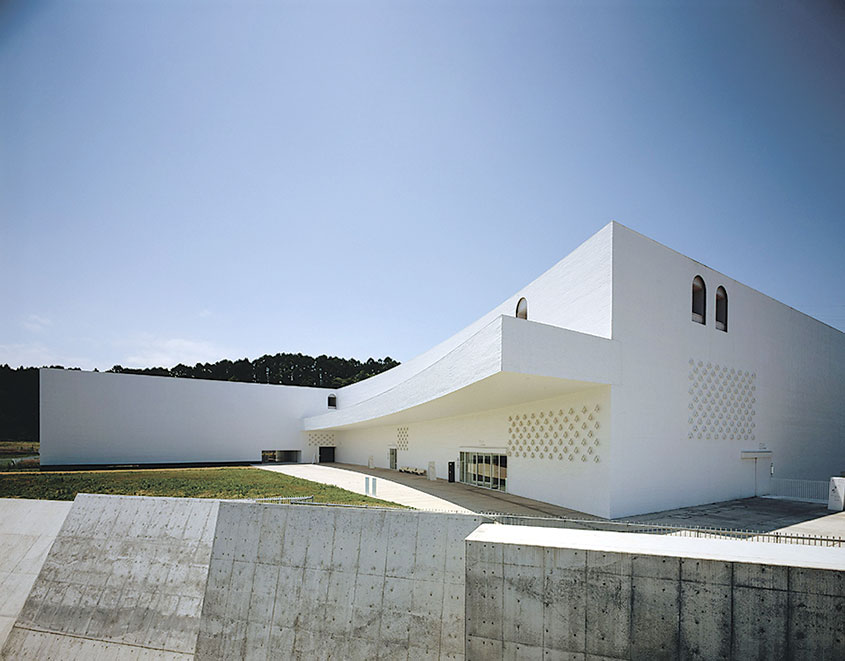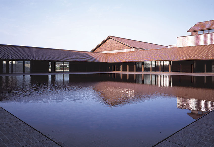 The Iwami Art Museum stands adjacent to the Iwami Arts Theatre, separated by a courtyard. This art complex, named Grand Toit, is a hub for arts and culture and a gathering place for citizens and art lovers. The building itself is a work of art. Designed by architect Hiroshi Naito, its walls and roofs are lined with beautiful, glossy Sekishu tiles in a distinctive red-brown hue unique to the Iwami region of western Shimane.