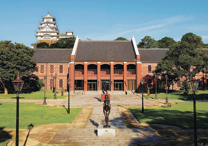 The Himeji City Museum of Art’s building is a brick structure constructed in the late Meiji Era (1868 to 1912) that originally served as a military warehouse. This museum, located on the premises of the Himeji Castle World Heritage Site, is designated as a National Registered Tangible Cultural Property. The Nozato district east of the castle is known for its historical townscape and traditional *machiya* (townhouses), making the entire area appealing to both art lovers and history enthusiasts.