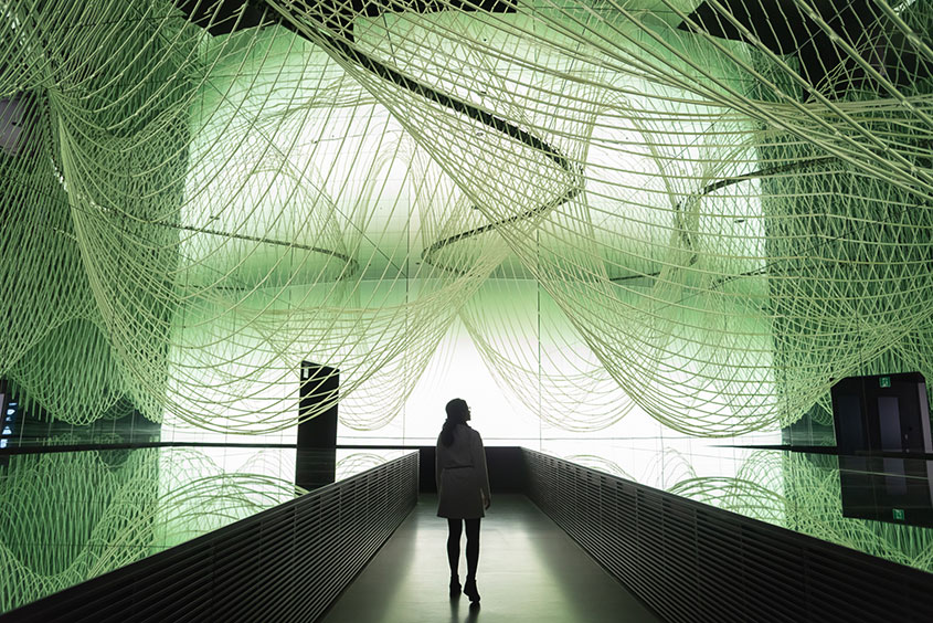 Throughout the journey, the organic visual system that symbolized the work of microorganisms decomposing waste continuously animated the spaces, subtly reinforcing the pavilion's core message.