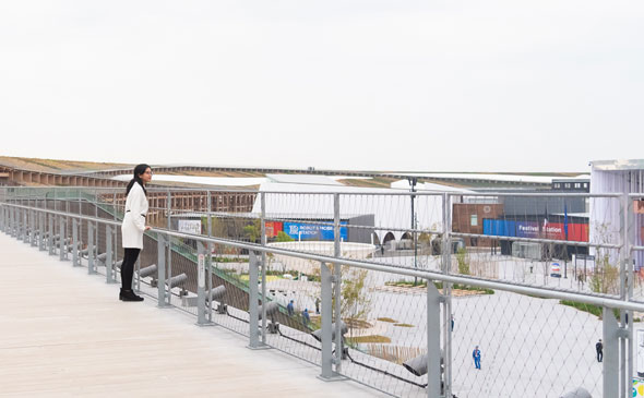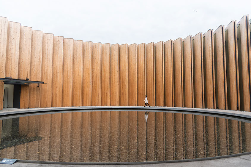 Located about a 7-minute walk from the East Gate, the pavilion immediately stood out with its striking circular structure built with cross-laminated timber (CLT), which somehow reminded me of Stonehenge, located on the Salisbury Plain in Southern England. The Stonehenge’s circular shape reflects the ancient belief in the cycle of life—circles have no beginning or end and thus symbolize eternity. How profound it is that even today, the modern architects who designed this pavilion seem to hold the same belief.