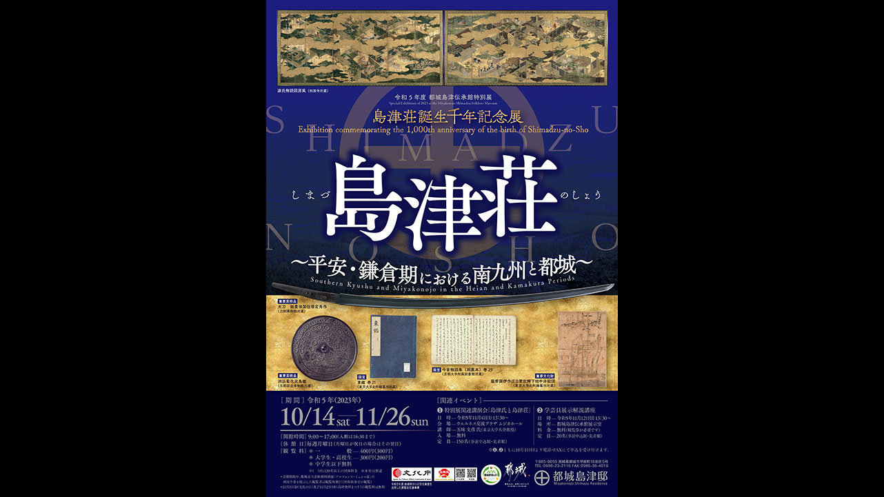 To mark this occasion, the exhibition demonstrates the relationship between the Imperial Court, aristocrats, and Shogunate over Shimadzu-no-sho, and their relationship with Southern Kyushu and the Miyakonojo region during the Heian and Kamakura periods, displaying valuable cultural properties including the national treasure "Shimadzu Family Documents".