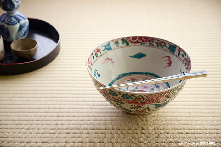 In the Chanoyu (Tea ceremony), there are documents known as "chakai-ki" (tea collection records). These detail when, where, and by whom a gathering was held, as well as what utensils were used, and were meticulously recorded by tea practitioners of the past. Tracing these chakai-ki reveals that in the early 16th century, when the Chanoyu (Tea ceremony) began to become popular among merchants, monks, and warlords, tea bowls were freely chosen and used as part of the arrangement and presentation, not restricted to specific production areas or shapes. This was just before the procedures and etiquette of the Chanoyu (Tea ceremony) began to be formalized. Later, in the late 16th century, with the advent of Raku tea bowls made by the potter Chojiro, unique domestically produced tea bowls called "wamono chawan" were made in various regions, and people's appreciation of Chanoyu (Tea ceremony) bowls became richer and more complex.