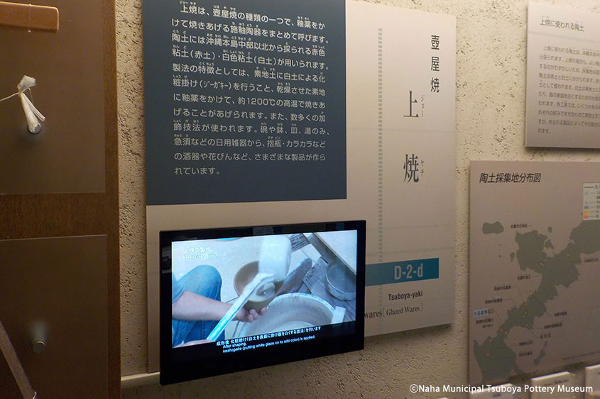 The Permanent Exhibition Room on the second floor features various vessels used in daily life with a focus on Tsuboya-yaki (Tsuboya ware), the most famous pottery from Okinawa. Manufacturing methods and techniques are introduced through videos. Multilingual audio guides and captions are available, allowing visitors to enjoy the exhibits in their respective languages. The Tsuboya district, where the museum is located, still has about 10 pottery workshops producing a wide range of Tsuboya-yaki, from traditional designs to modern creations.