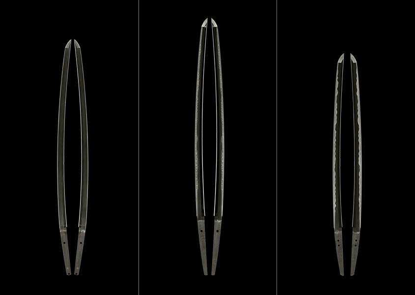 The Japanese swords have from ancient times been admired not simply as a weapon, but as a prized treasure and an exquisite work of art. Perhaps most emblematic of the unique beauty of the Japanese sword is the hamon, the distinctive tempered patterning along the cutting edge of the sword's blade. The often organic and ethereal patterns of these hamon possess a diversity of form and a profoundness of depth that help set the Japanese sword apart from other forms of global swordcraft. Central to the sword's aesthetic beauty, over time a number of categories developed for classifying and describing the most common types of hamon. These include the straight suguha, the undulating wave-like notare, the irregular patterns of ko-midare, the zigzag "alternating eyes" gunome, clove-shaped chōji, the "surging waves" tōran pattern, and the amorphous hitatsura. However, no two hamon are alike – and it is perhaps here that the Japanese sword resonates with our own unique, internalized mindscapes, allowing us to perceive indefinable and irreproducible mental landscapes.