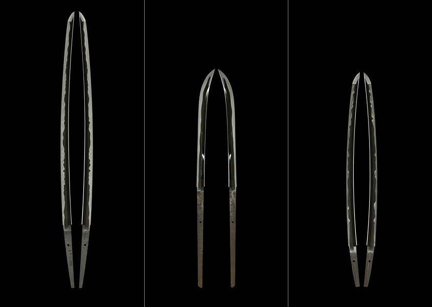 Through the steel tempered by countless master swordsmiths and the hamon patterns embedded in the forged surface, these swords evoke multifaceted scenescapes through their complex configuration of diverse elements, such as the serene horizon of a suguha hamon, the crashing wave forms of a tōran hamon, the powerful crystal forms of nie, or the misty forms of nioi. This infinite scenic variability transcends the descriptive capacities of language, echoing the experience of perceiving the crystalline surface of water, a violent sea in winter, a mountaintop rising from a sea of clouds, or a receding mountain engulfed in fog. These diverse kinds of glimmering landscapes embedded in the bare blade are brought forth through exposure to the light of the sun, the moon, or the artificial light of the gallery, generating for each individual viewer, for a brief moment, an ineffable and singular mindscape.