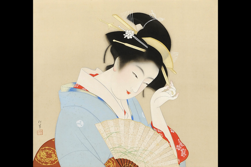 Uemura Shōen (1875-1949) was a Nihonga artist who continued to paint elegant, serene bijinga (paintings of beautiful women) throughout her career. Born and raised in Kyoto, she depicted women with themes taken from Edo and Meiji manners and customs and the Chinese and Japanese classics. Showing her work in many exhibitions, she became highly regarded as a virtuoso in the bijinga genre. This exhibition displays our collection of her works in one setting, combined with bijinga by Kaburaki Kiyokata, Itō Shinsui, and other artists. Please enjoy this opportunity to experience the breadth and wealth of the world of bijinga in Nihonga and stylistic developments within it.