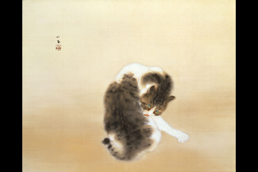 Takeuchi Seihō (1864-1942), a Nihonga artist who was a powerful force in the modern art world in Kyoto, depicted an abundance of animals throughout his life. His superb talent as a draughtsman made his paintings of animals highly renowned. Designated an Important Cultural Property, his Tabby Cat, painted in 1924, made him famous as a master of animal painting in the world of modern Nihonga. This special exhibition will include not only Tabby Cat, being shown for the first time in four years, but also sixteen other paintings of animals by Seihō. It will also include paintings by Seihō‘s students Nishimura Goun, Nishiyama Suishō, and Hashimoto Kansetsu, as well as Uemura Shōkō and Takeuchi Kōichi, all known for their own paintings of animals. To these works by Seihō and other Kyoto artists, this exhibition adds superb and distinctive animal paintings by famous Tokyo-based artists Kobayashi Kokei and Okumura Togyū.
