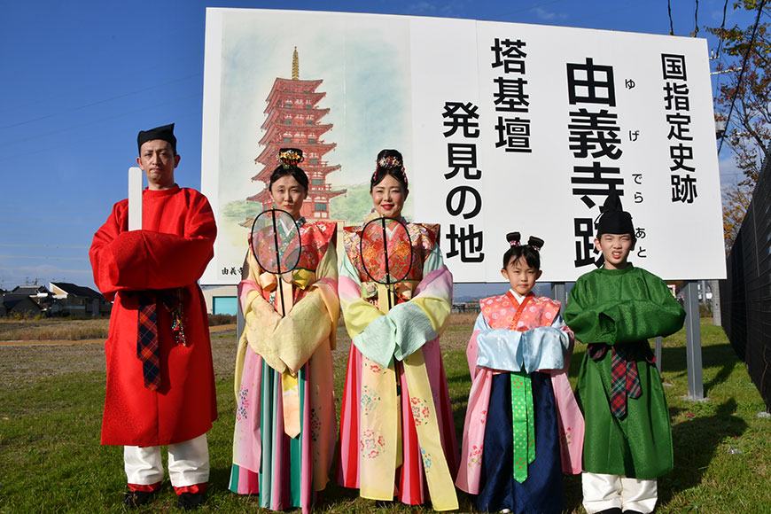 During the Nara period(710-784), when Buddhist art such as Todaiji Temple and culture from Tang flourished, politics and Buddhism were the closest in Japanese history, and even in Yao, Yuge-dera Temple and Yuge no Miya Palace were created by Empress Shotoku and Dokyo. Was created. There is also a record of male and female aristocrats dressed in colorful costumes holding a Utagaki on the banks of the river along with the emperor's dedication, and its gorgeous appearance can be imagined. We will touch on a part of this international Tenpyo culture and give courses and experiences using costumes from the Nara period that have been restored so that you can think of Yuge no Miya Palace, which was crowded with many people.