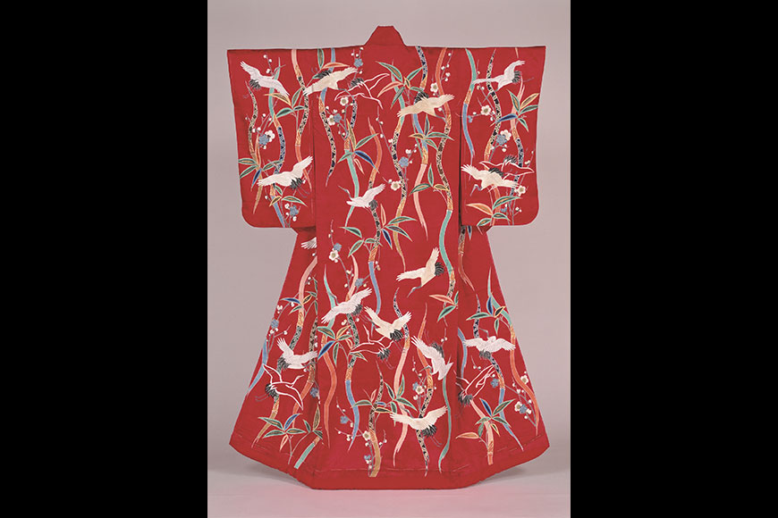 Weddings are arguably one of life’s most glamorous rites of passage. In both East and West, wedding ceremonies abound with hopeful and joyful sentiment. To express those feelings, colors, shapes, and patterns connoting happiness were used in the wedding attire that beautifully adorned the bride, in the various implements used in the wedding ceremony, and all of the myriad details that set the tone of the nuptial occasion. In this exhibition, we present bridal attire and wedding paraphernalia from the Edo period through the early modern period, highlighting the beauty and sophistication characteristic of that era.