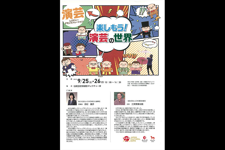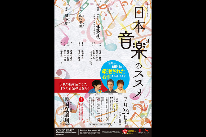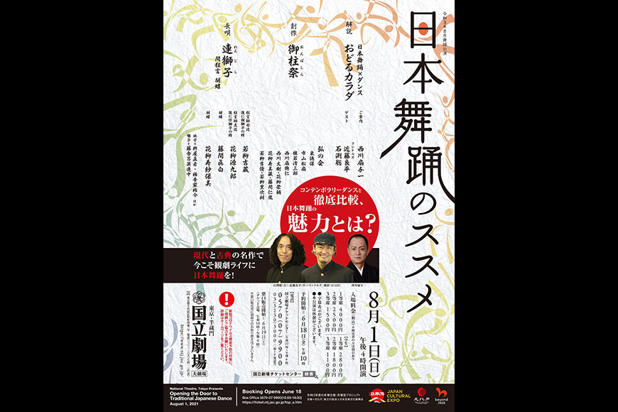 In addition to the KABUKI, NOH & KYOGEN, and BUNRAKU performances, the 2021 program will be expanded to new fields, with performances such as NIHON-BUYO (Traditional Japanese Dance) and HOGAKU (Japanese Traditional Music). The series of performances includes introduction and multilingual support for overseas visitors, foreign nationals living in Japan, and Japanese beginners.
